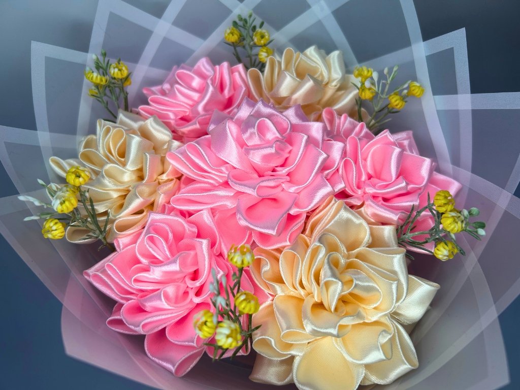 Věčné květiny jsou ručně tvořené ze saténových stuh tak, aby vydržely roky krásné a plné lásky.